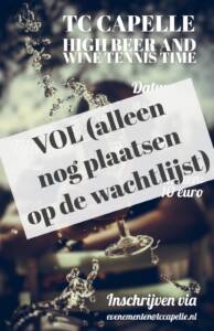 Schrijf je snel in via evenementen@tccapelle.nl (vol = vol). Vermeld je speelsterkte en voorkeur voor bier of wijn. Hopelijk tot de 18e!