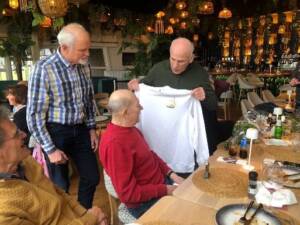 Echter, we hebben baas boven baas. Joris & Rinus, twee mannen die zich al tientallen jaren met heel hun ziel en zaligheid ingezet hebben voor de club. Door leeftijd en gezondheid konden ze helaas niet meer actief meewerken. Gezien hun enorme verdiensten, hebben we ze uitgezwaaid met een etentje, loftuitingen in de speech van de voorzitter, zang (tot grote hilariteit van de andere klanten) en cadeaus van hun oude maten en het bestuur.
